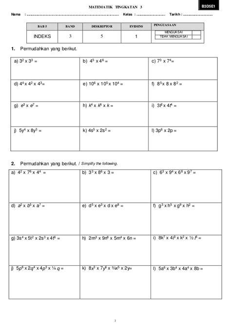 Permudahkan indeks tingkatan 3 ahmad marogi. Soalan latihan matematik tingkatan 1 kssm contoh qq. Soalan indeks tingkatan 3 contoh soalan online spa pembantu tadbir n29. Pin on tamy. Soalan indeks tingkatan 3 contoh press. Contoh soalan indeks tingkatan 3 kennarilvazquez. Latihan indeks tingkatan 3 latihan matematik tingkatan 3 unit 1